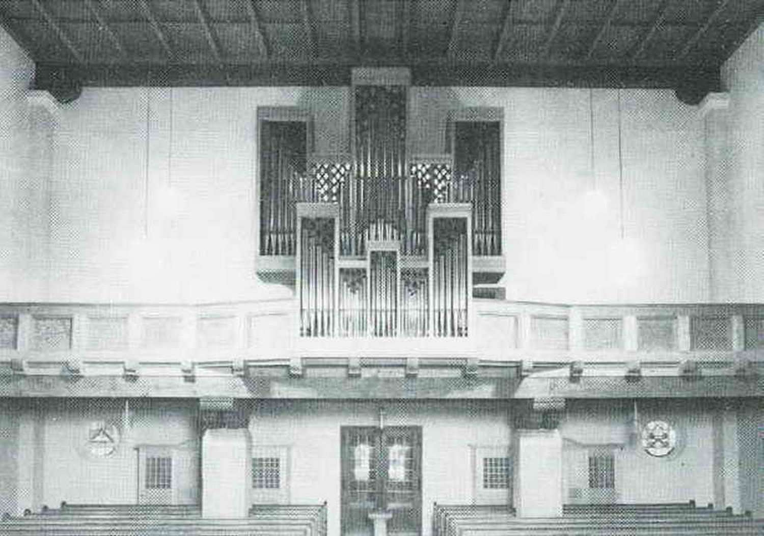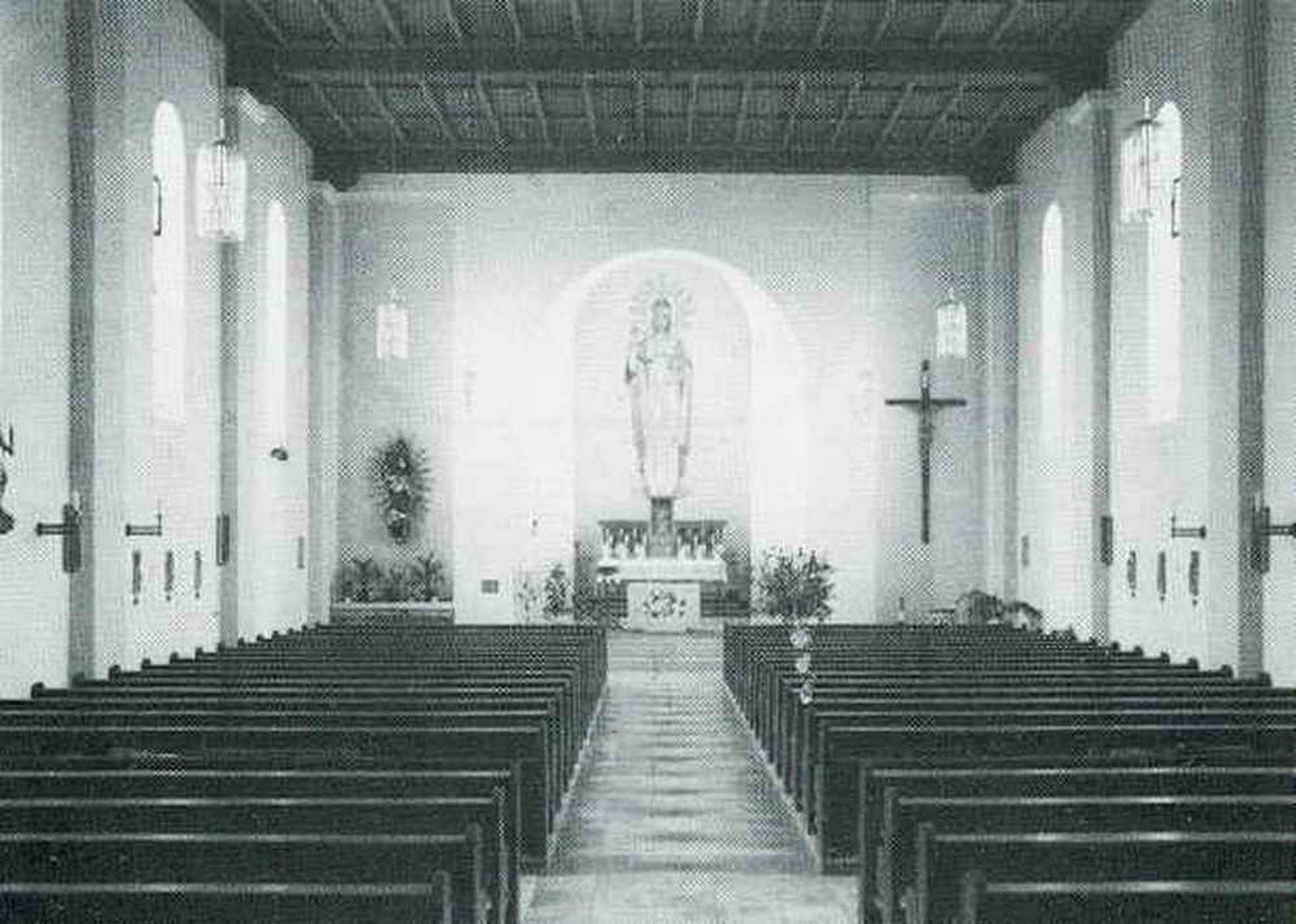 Grundsteinlegung: 29. Juni 1935 — Grundstein im Chorbogen, links